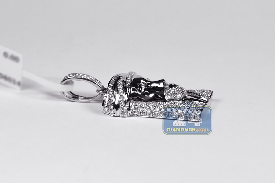 This Jesus Christ pendant is a must-have Sunday worship accessory! It's professionally handmade of cool 14k white gold, and high-polished for very smooth feel. It's encrusted with icy white round-cut diamond weighting 1.84 carat (SI1-SI2 clarity, G-H color). Our men's religious pendant measures 41 mm in height and 21 mm in width. Share your love for Jesus with the congregation wearing this splendid diamond piece of jewelry!