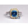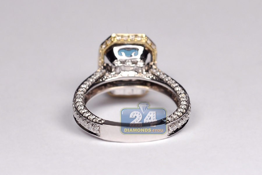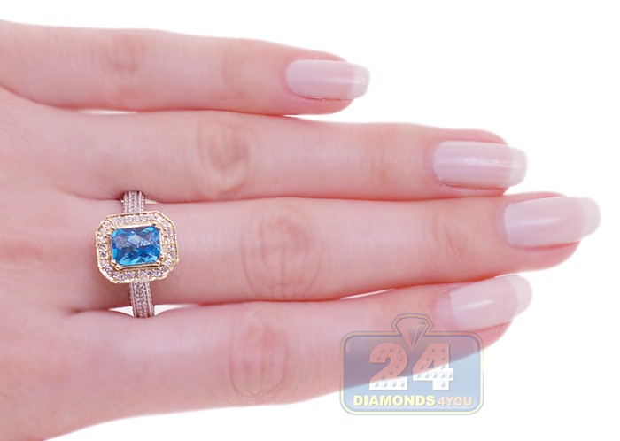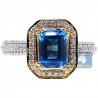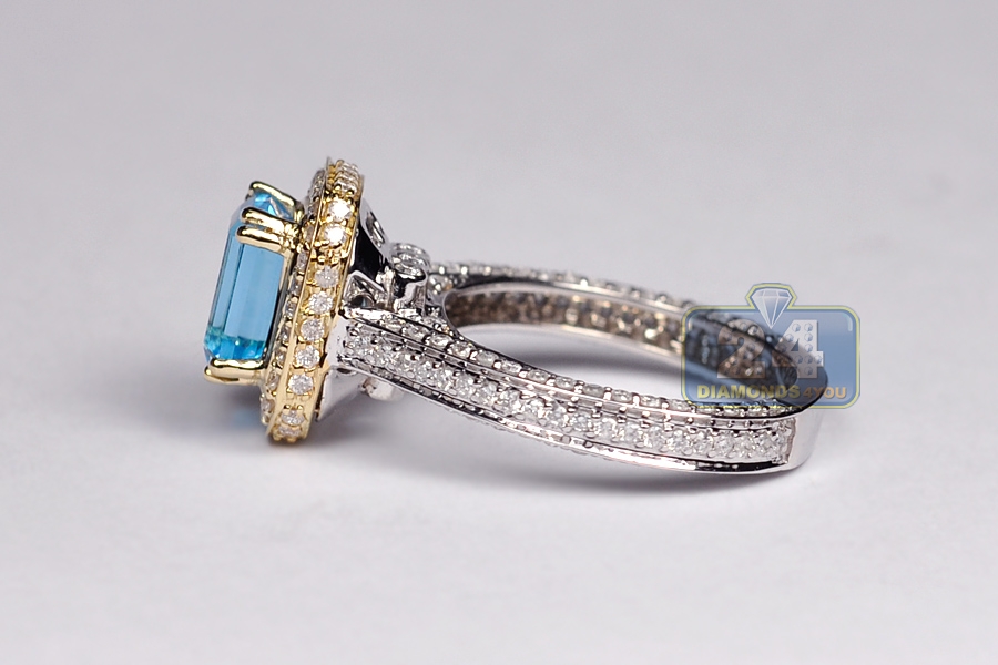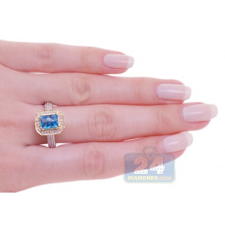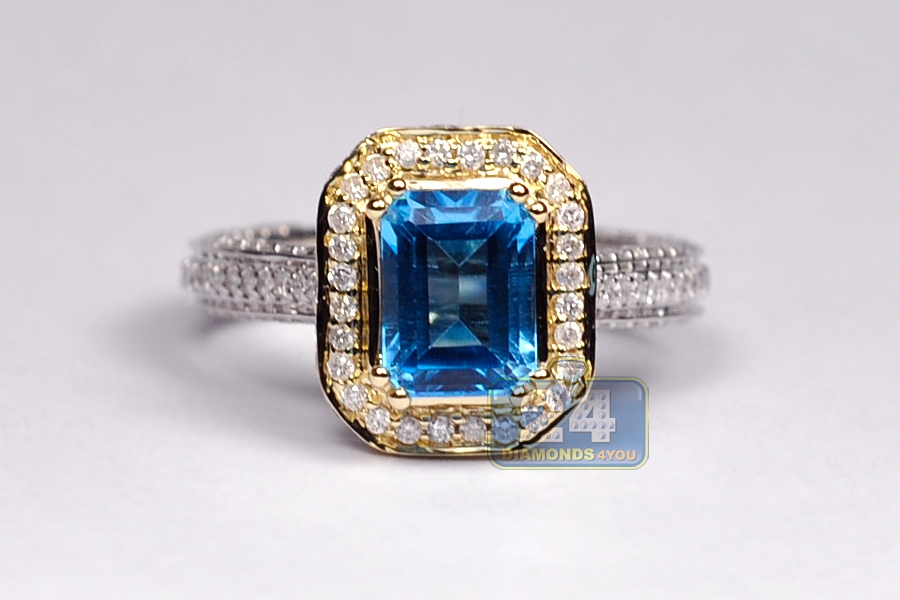 14K Two Tone Gold 1.85 ct Topaz Diamond Halo Engagement Ring