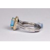 Express your lasting love with this cute engagement ring! Heavenly blue topaz center stone is high mounted into an 14k yellow gold crown with icy white diamonds around it. The actual setting is professionally crafted in cool 14k white gold with perfectly polished finish. Impressive icy white diamonds are handset on the shoulders of the ring as well creating a royal and sophisticated look of this bridal piece!
