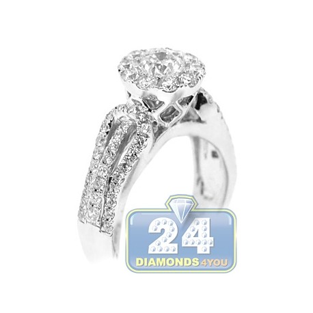 Our bridal piece is the best combination of quality and price! It features a timeless design crafted in cool 14k white gold with shiny polished finish, and skillfully encrusted with 1.87 carat of natural white round cut diamonds with G-H color and SI1-SI2 clarity. All these brilliants are gorgeously sparkling and eye clean. The engagement ring makes the breathtaking impression of real love!