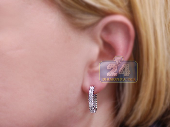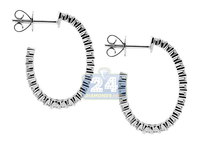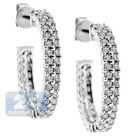 14K White Gold 1.87 ct Diamond Womens J-Hoop Earrings