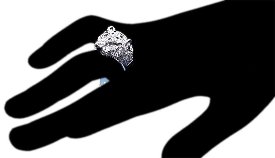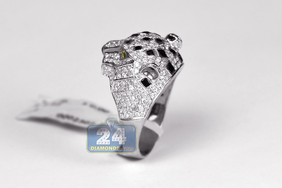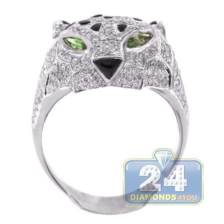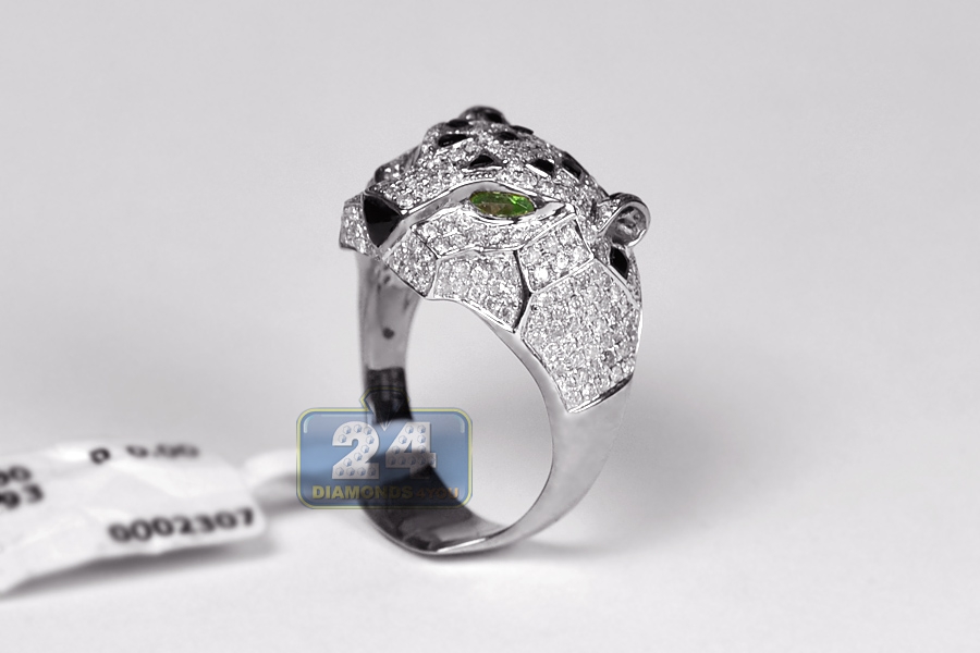 Eye-catching and extremely handsome, our diamond tiger ring is designed for a real man! The piece features cool 14k white gold, perfectly polished finish, genuine white round cut diamonds totaling 1.94 carat as well as natural green emeralds. What a great piece of jewelry to wear for any occasion to enjoy it's powerful character and unique appearance!