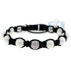 Luxurious and stylish, our diamond pearl bead bracelet will amaze any attire! It features 5 metal beads artfully made of cool 14 karat white gold, and highly polished for ultra smooth feel. One of them is studded with 2.00 carats of gleaming white round brilliant-cut genuine diamonds (SI1-SI2 clarity, G-H color). There are also eight cultured white pearls connected by sturdy black macrame. User-friendly pull closure makes this gemstone bead bracelet easy on and off. With this white gold bracelet you will make an unforgettable entry!