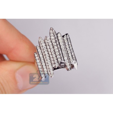 The glitter of this unique women's ring makes a substantial and dramatic statement! It is artfully handcrafted in lustrous 14k white gold with shiny polished finish, and expertly encrusted with natural icy white and eye clean round cut diamonds weighting 2.00 carat in total. No doubt, this multi-spike abstractly designed jewelry piece will be the first eye catching accessory in your wardrobe!