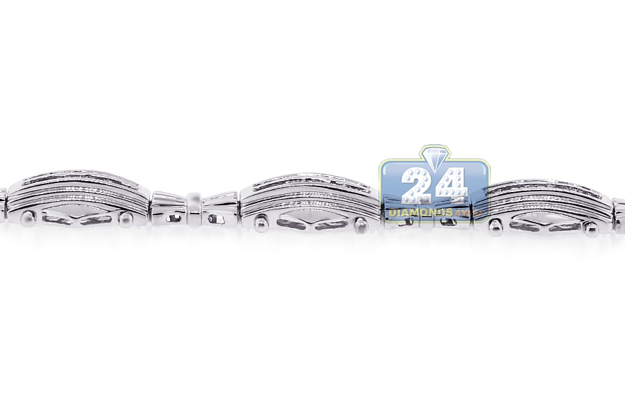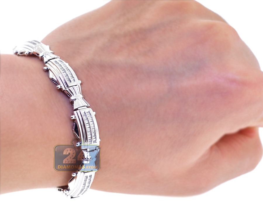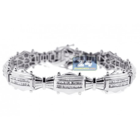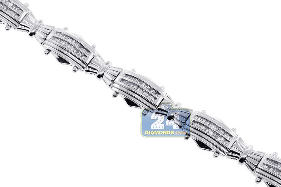 14K White Gold 2.01 ct Baguette Diamond Link Mens Bracelet
