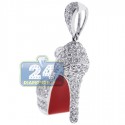 14K White Gold 2.02 ct Diamond Red High Heel Shoe Pendant