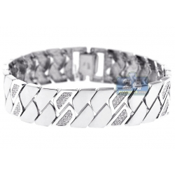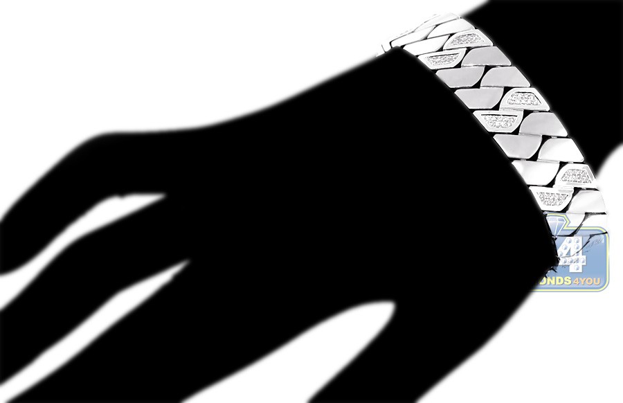 Envelop her wrist in this gorgeous diamond geometric bracelet that has sensational look! Masterly created from cool l14 karat white gold, it features highly polished ultra smooth finish. Our women's diamond bracelet is set with icy white round brilliant-cut natural diamonds of 2.10 carats. It has length of 8 inches, width of 15 mm; and closed by secure jewelry clasp. Perfect look for a modern woman!