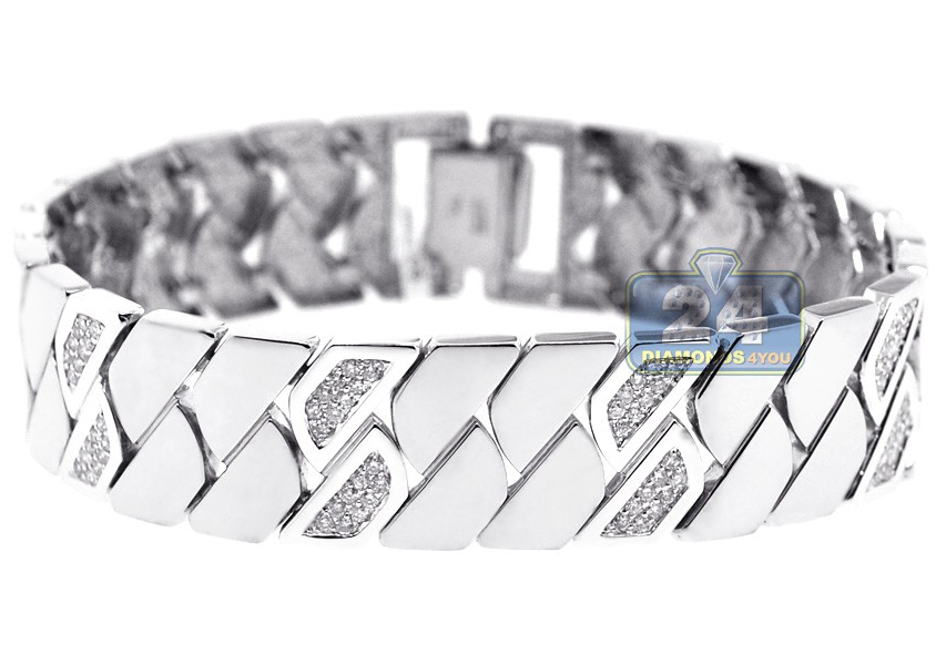 14K White Gold 2.10 ct Diamond Geometric Link Womens Bracelet
