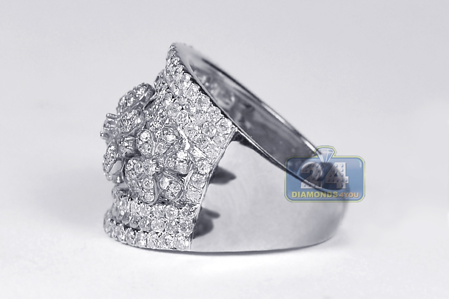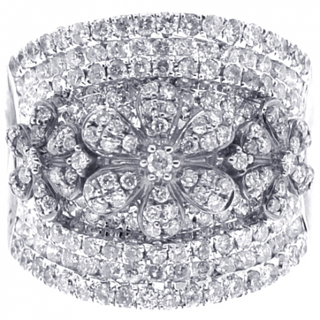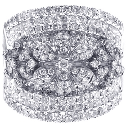 14K White Gold 2.15 ct Diamond Flower Womens Band Ring
