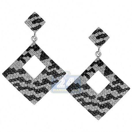 Simply spoil yourself with this absolutely adorable zebra theme diamond pair of earrings! Maximizing shine comes from impressive combination of glittering 2.16 ct total weight round cut black & icy white diamonds. Our women's diamond earrings have hanging length of 35 mm, and the squares are 25 x 25 mm. Add a dose of chick effect to your look with these 14k white gold square earrings.