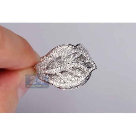 14K White Gold 2.26 ct Diamond Womens Leaf Design Ring