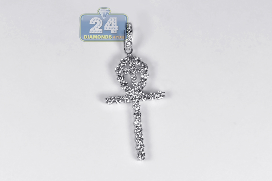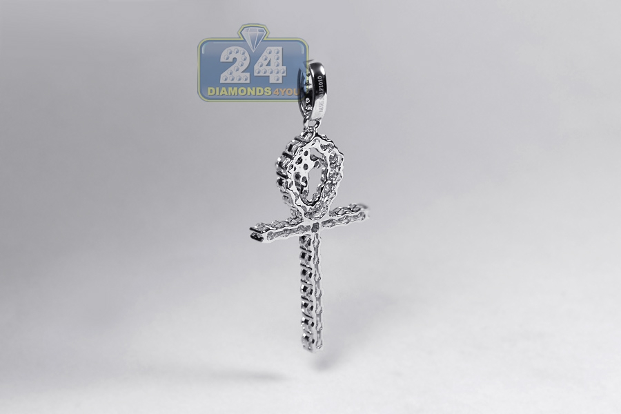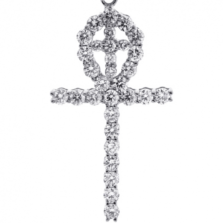 14K White Gold 2.27 ct Diamond Egyptian Ankh Dual Cross