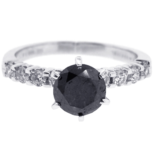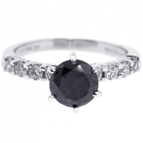 Our classic black diamond engagement ring makes one breathtaking impression of love! It is expertly crafted in lustrous 14k white gold, and polished for ultra-smooth shiny finish. The center features enhanced black round-cut natural diamond of 1.88 carat that emphasized by round brilliant-cut white diamonds of 0.48 carats. Celebrate the romance of your new life together with this lady's solitaire ring!