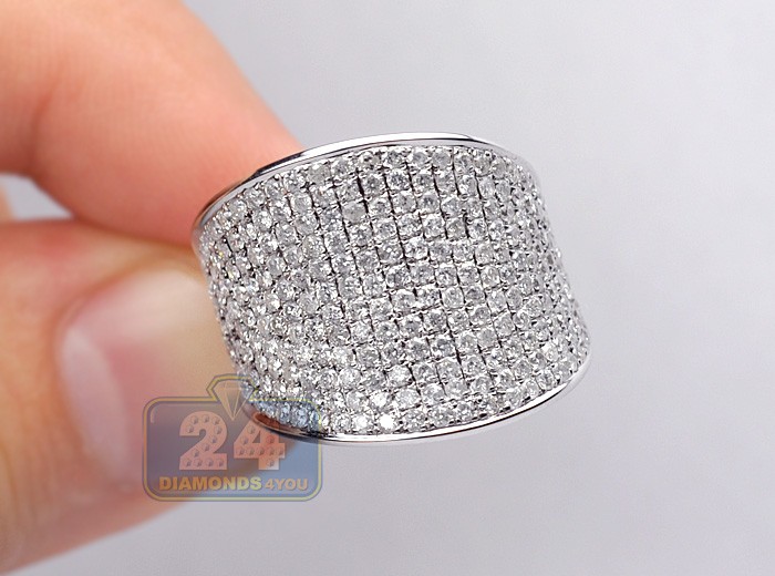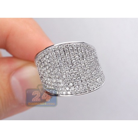 14K White Gold 2.72 ct Diamond Womens Wave Band Ring