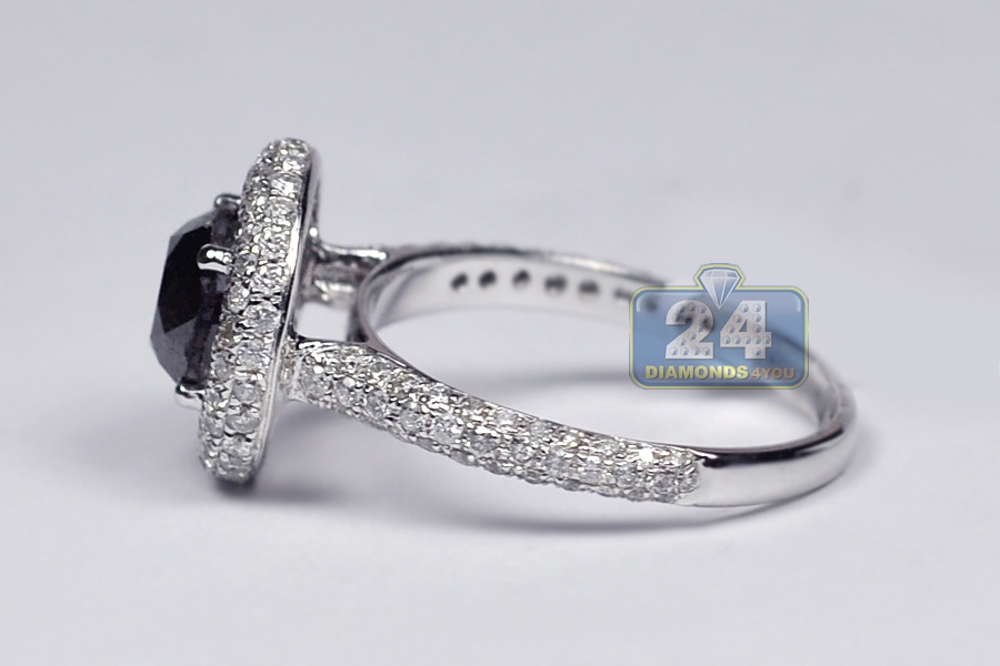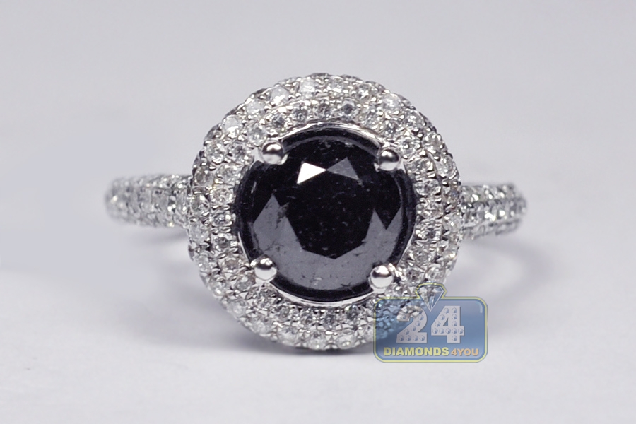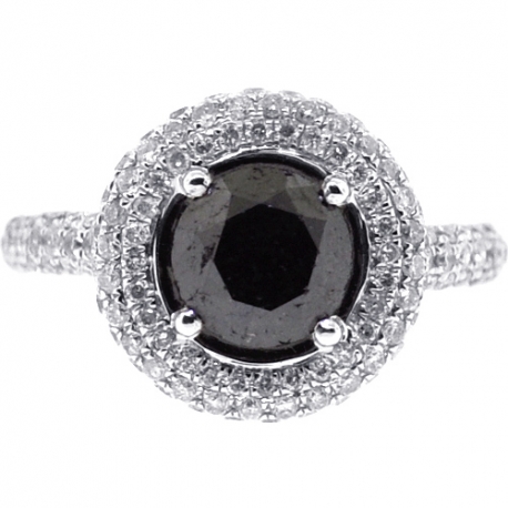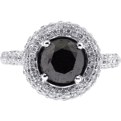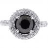 14K Gold 2.73 ct Black Diamond Womens Halo Engagement Ring