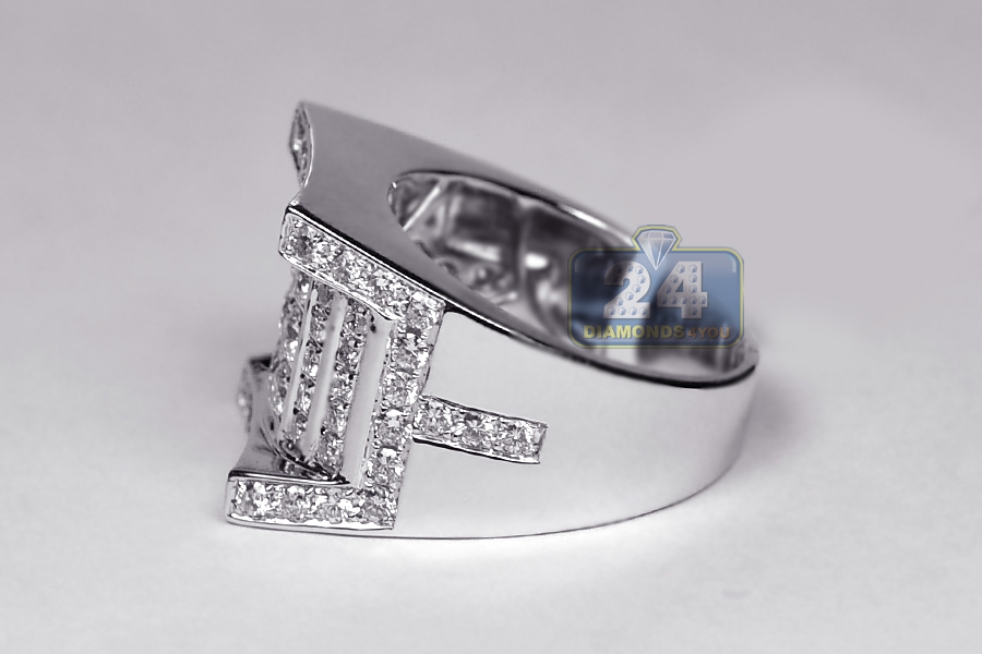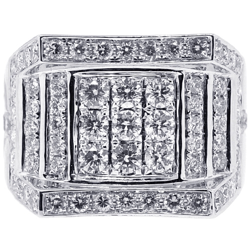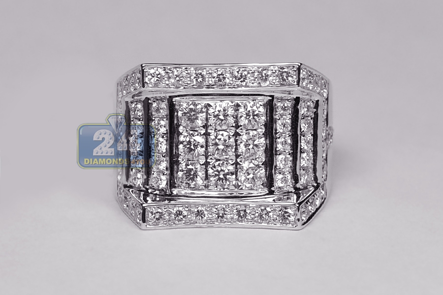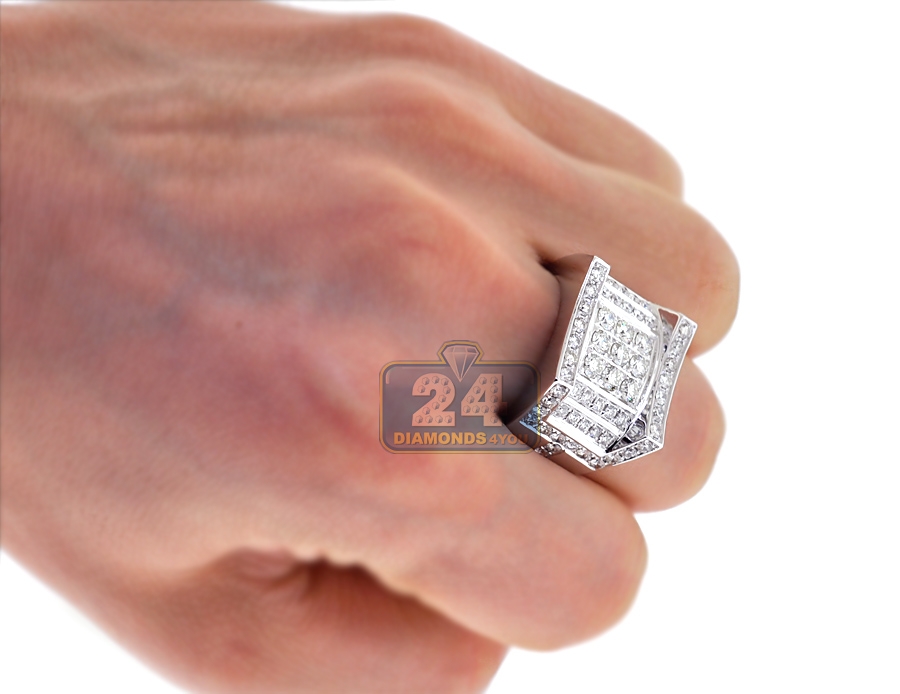 14K White Gold 2.74 ct Diamond Mens Rectangle Ring