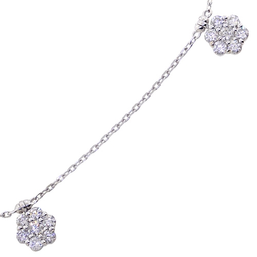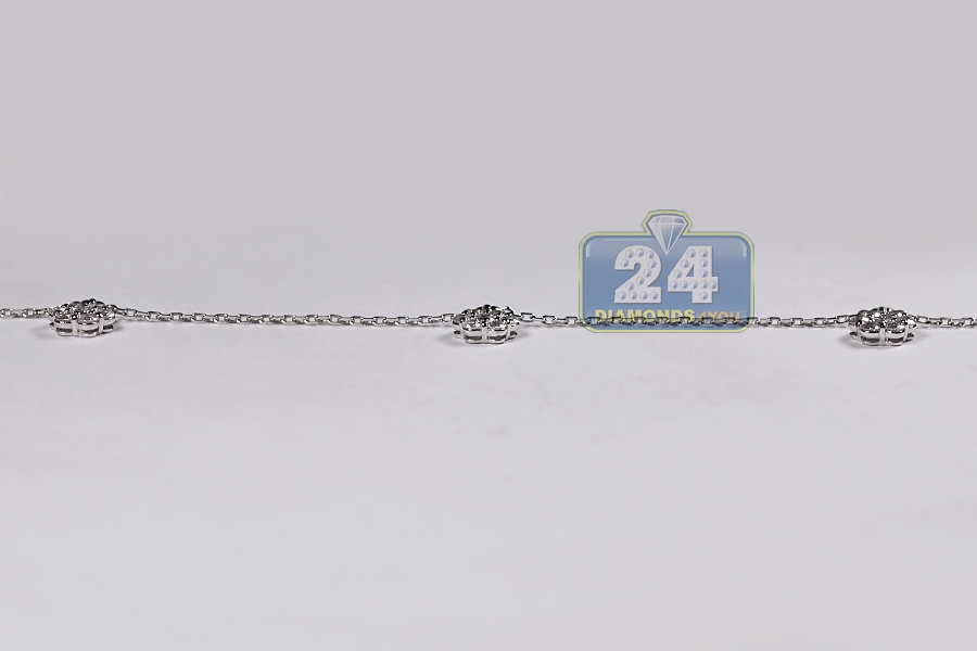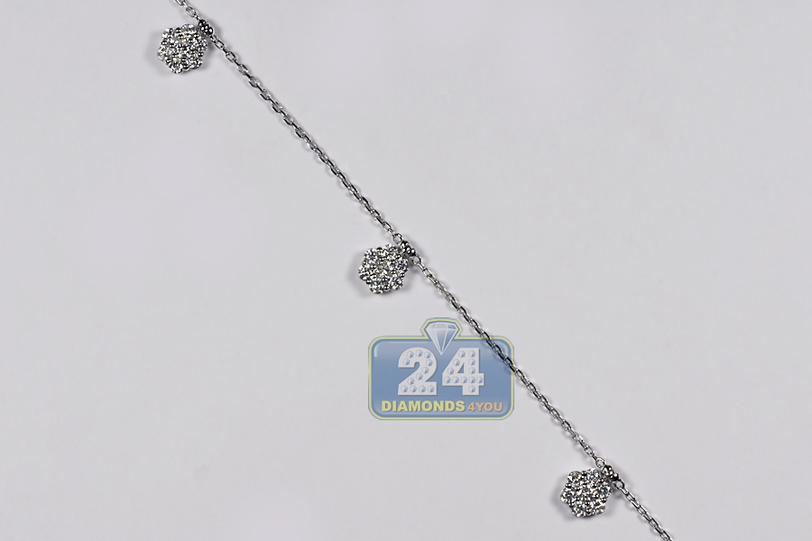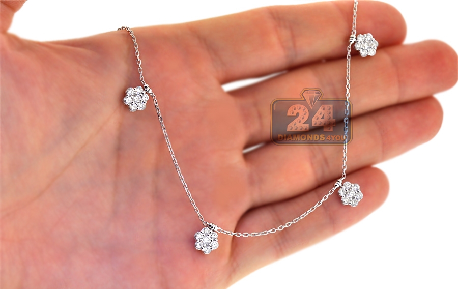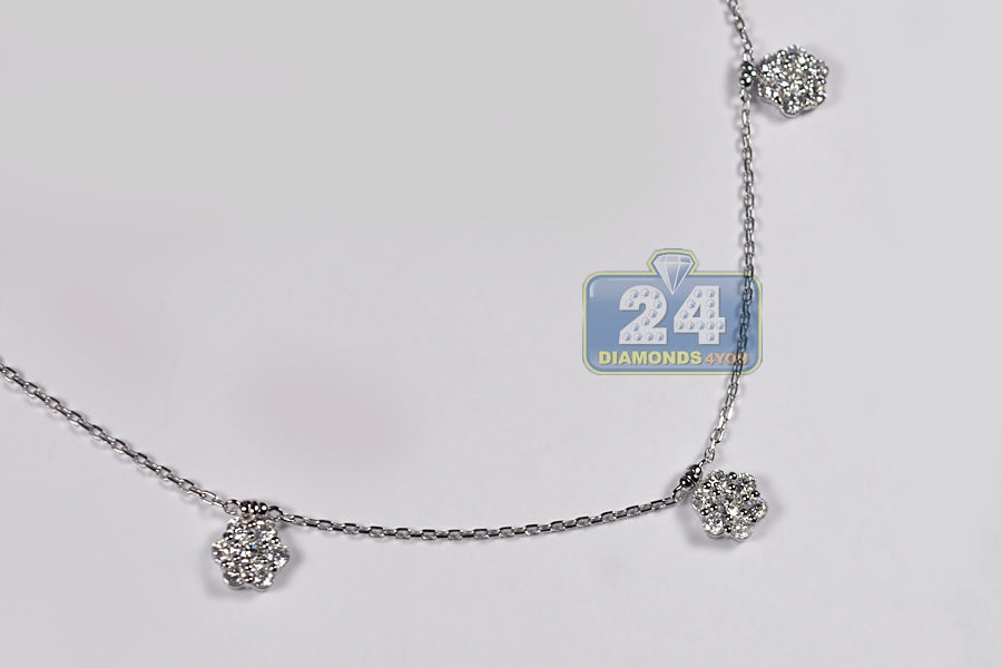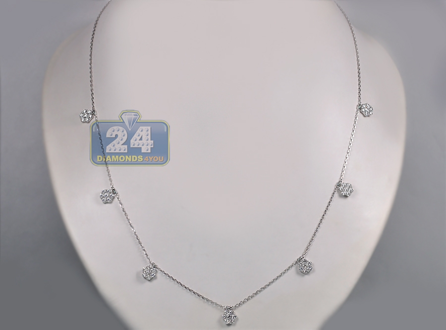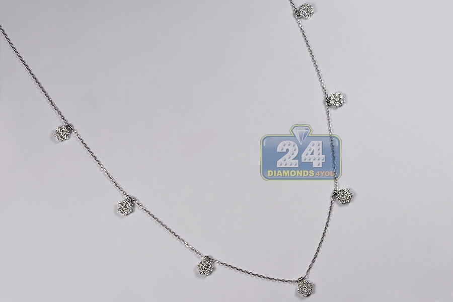 14K White Gold 2.77 ct Diamond Cluster Womens Station Necklace