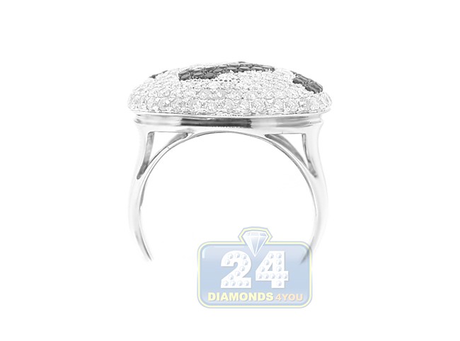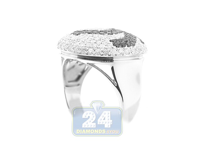 Sleek, handsome and truly special! Our round shaped men's signet features the unique map design artfully created with 2.81 carat black and white diamonds. These are absolutely genuine brilliants stylishly combined for the solid look. The setting is professionally handmade of 14k white gold with perfectly polished finish. This comfortable ring harmonically combines style and substance! Add such a bold piece to your wardrobe!