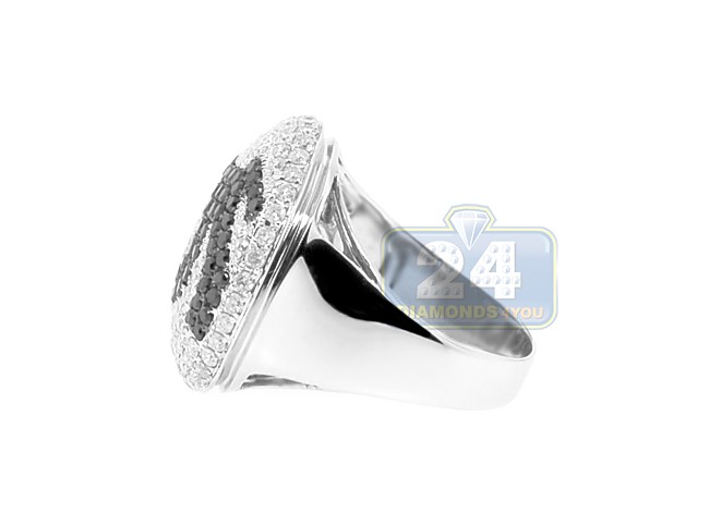 14K Gold 2.81 ct Black White Diamond Mens Round Map Ring