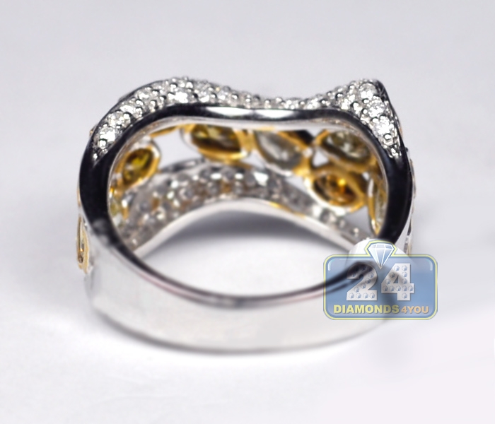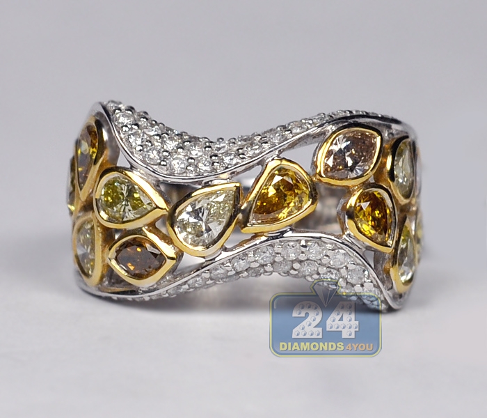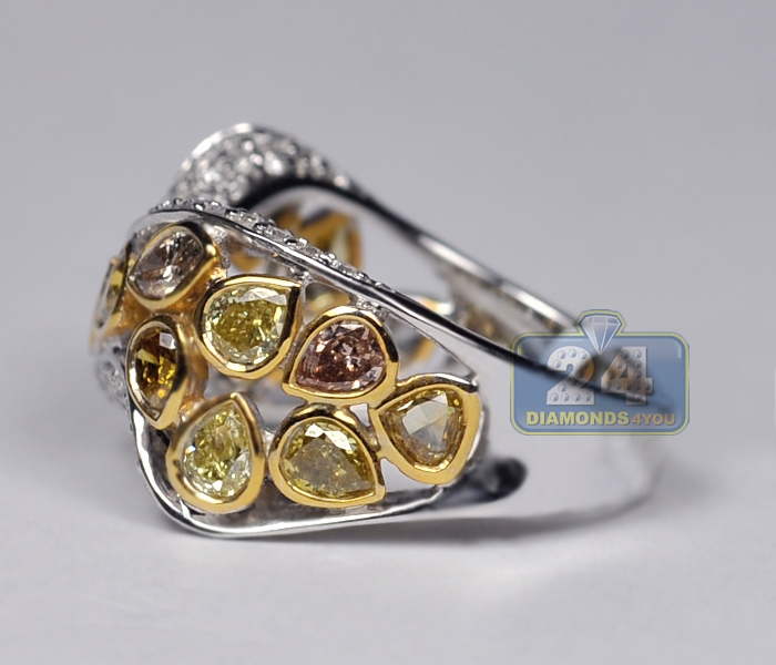 Dress yourself up with something fascinating and unique! Gorgeously handcrafted in cool 14k white gold with shiny polish, this exclusive diamond ring features a beautiful design covered in genuine fancy yellow, brown and icy white diamonds. A spectacular look for your special person!