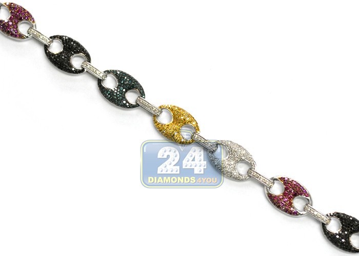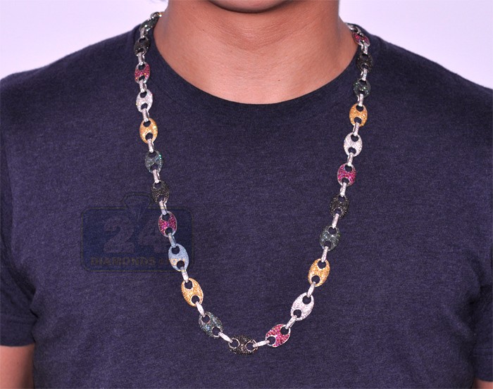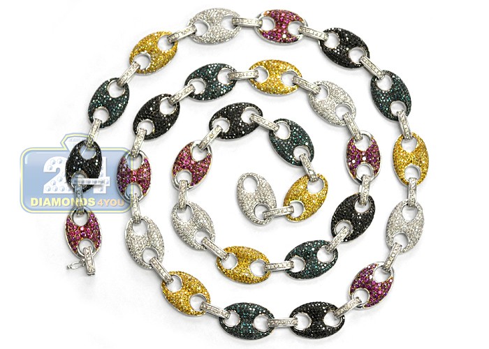 Imagine how spectacular it will feel to wrap your neck in our color diamond mariner chain! Artfully created from solid 14k white gold, it's precisely polished for ultra sparkling finish. The anchor link necklace is paved with 20.00 carats of enhanced multicolored natural diamonds (white, black, blue, canary, purple). This men's diamond necklace measures total length of 30 inches and width of 14 mm. Choose a bold, high-fashion look of the diamond anchor necklace!
