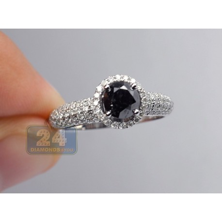 14K White Gold 2.04 ct Black Diamond Halo Engagement Ring
