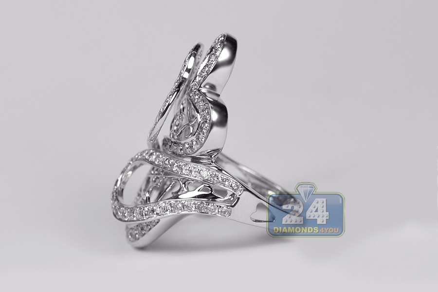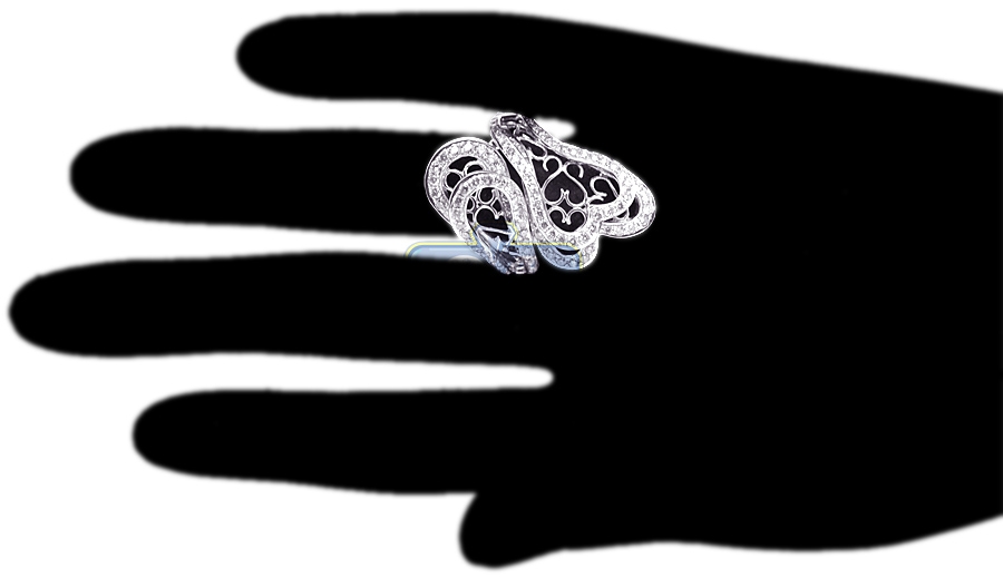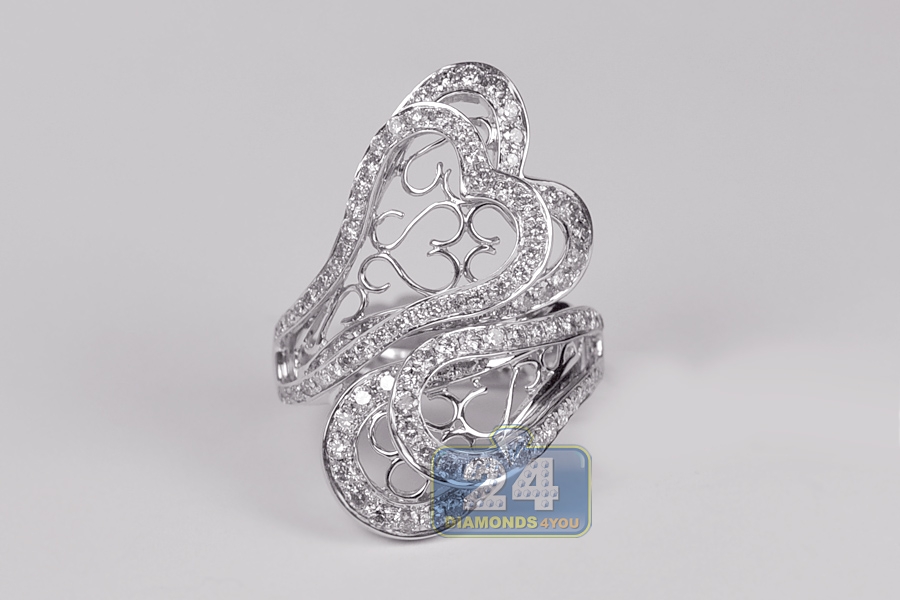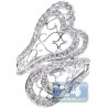 14K White Gold 2.04 ct Diamond Womens Hearts Bypass Ring
