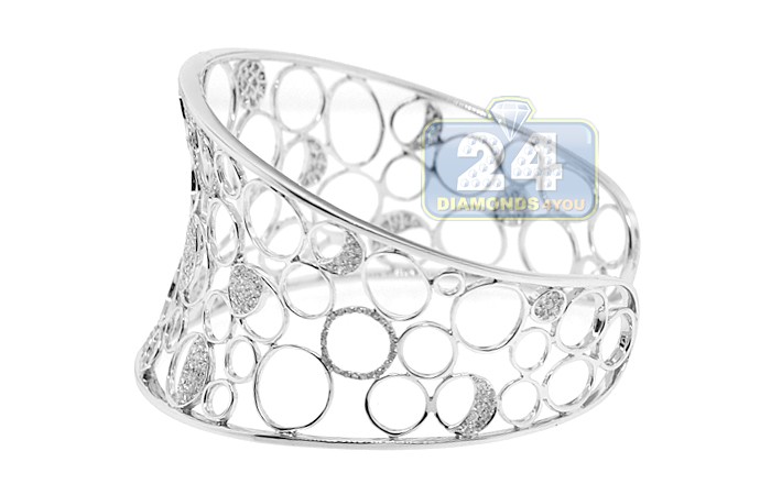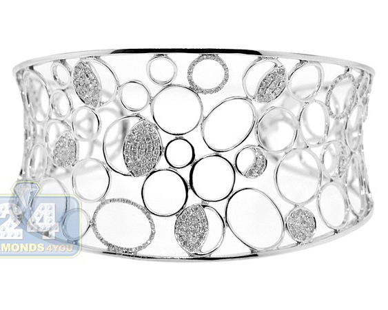 14K White Gold 2.05 ct Diamond Womens Openwork Cuff Bracelet
