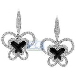14K White Gold Ceramic 2.07 ct Diamond Butterfly Womens Earrings