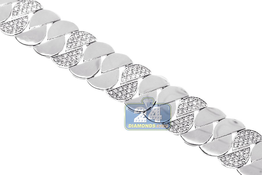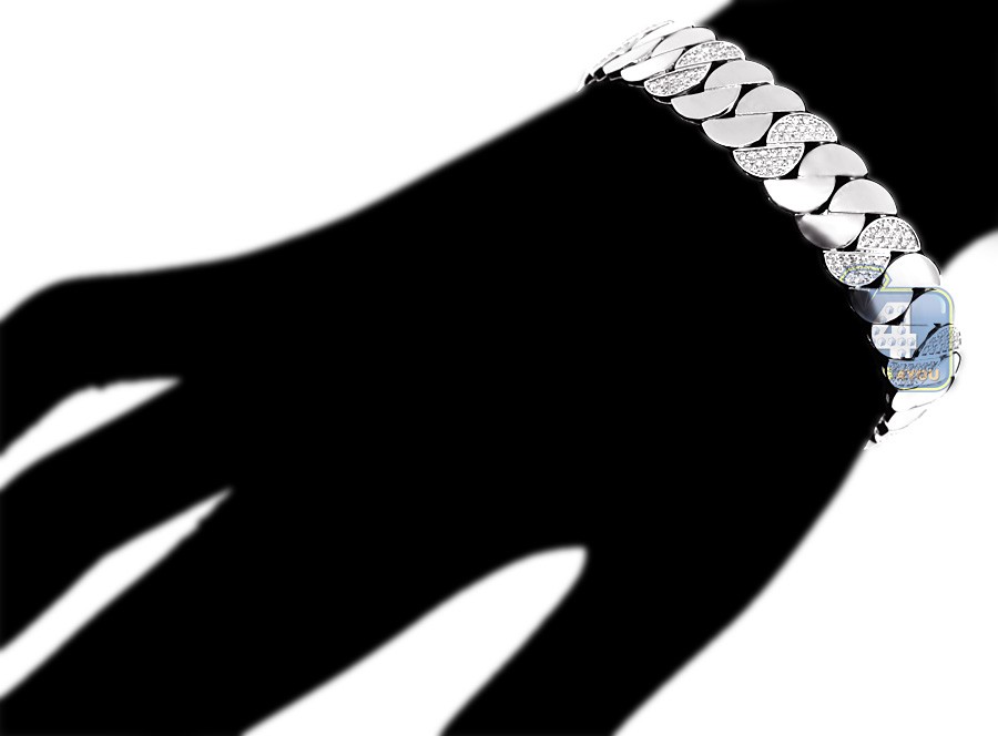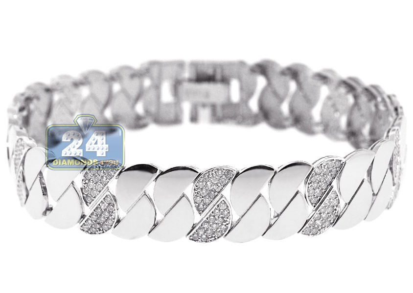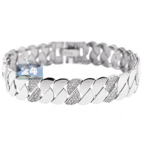 Illuminate her wrist with a lavish look of this gleaming diamond link bracelet! It's artfully produced from cool 14 karat white gold, and has highly polished finish for brilliant shine. This bracelet is also encrusted with 2.20 carats of icy white round brilliant-cut diamonds. Our women's wrist bracelet features 8 inches in length and 13 mm in width. The diamond piece of jewelry makes an unforgettable impression!