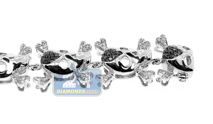 Unique and incomparable, this skull diamond bracelet is artfully crafted in gleaming 14 karat white gold with highly polished smooth finish. The links are paved with 2.20 carats of icy white and black round-shaped genuine diamonds. The piece measures 9 inches in length, 16 mm in width, and closed by comfortable box clasp. Get this men's diamond bracelet for your delight!
