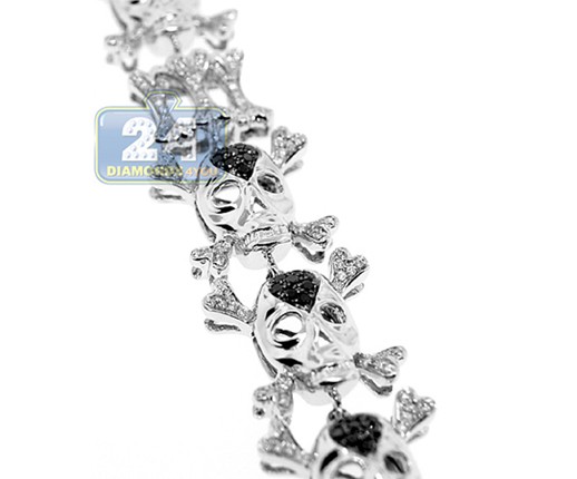 14K White Gold 2.20 ct Diamond Skull Bones Mens Bracelet