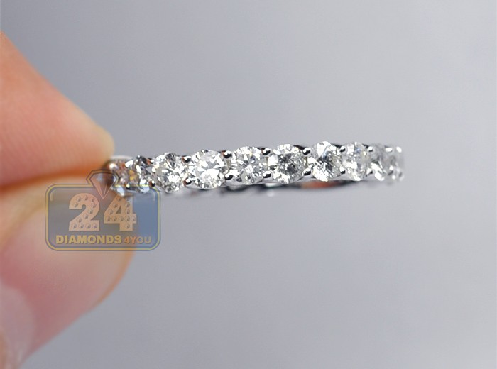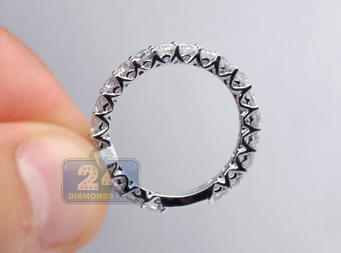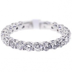 Show the real glitter with our shimmering diamond eternity ring! It features 3mm vintage inspired setting handmade of cool 14k white gold with high polished finish, and expertly handset with 2.20 carat of genuine round cut diamonds. Each stone is eye clean and sparkling, with H-I color and SI1-SI2 clarity. Memorialize your unending love and relationship with this amazing bridal jewelry piece!