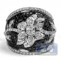 14K White Gold 2.36 ct Black Diamond Womens Flower Ring