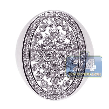 14K White Gold 2.36 ct Diamond Womens Oval Signet Ring