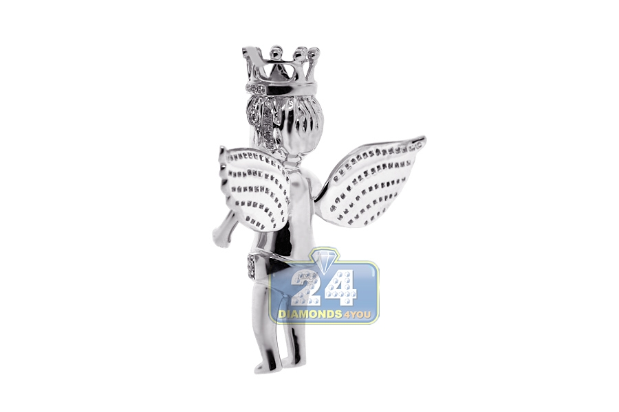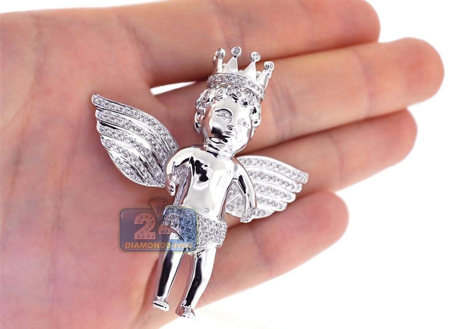 14K White Gold 2.41 ct Diamond Crowned Angel Mens Pendant