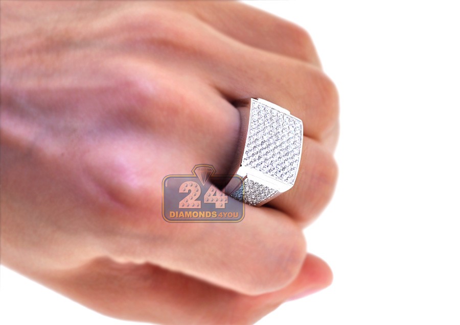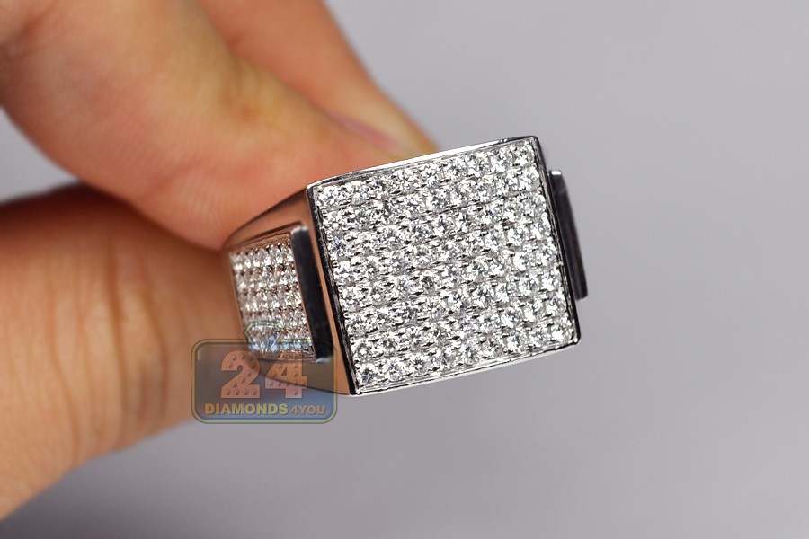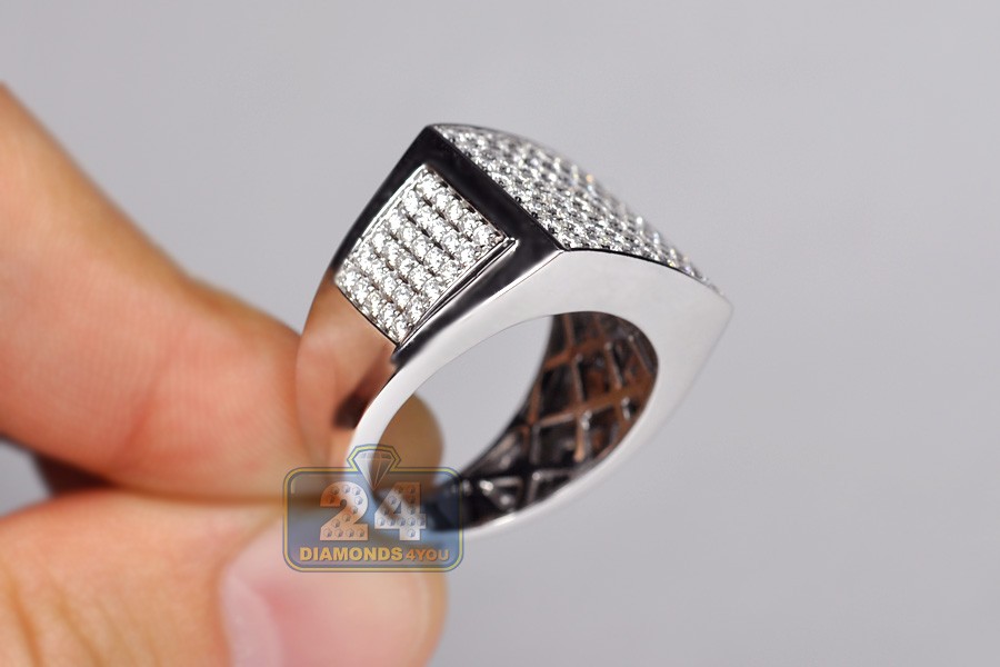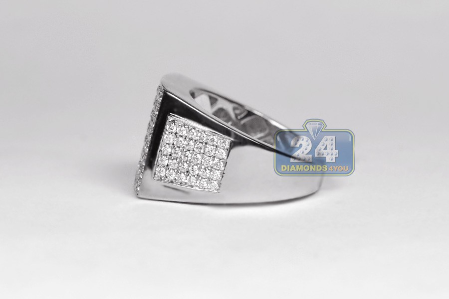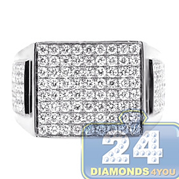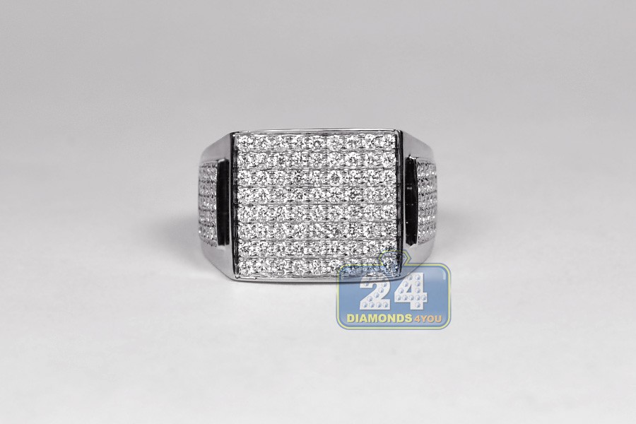 14K White Gold 2.41 ct Diamond Rectangle Shape Mens Ring