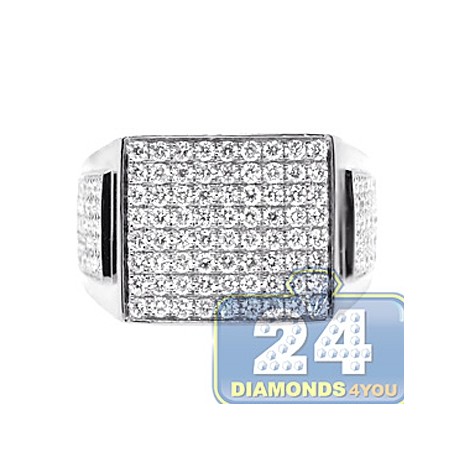 Impress with your sense of style with this spectacular diamond signet! The ring is skillfully handmade of lustrous 14k white gold, has shiny polish, and handsomely accented with 2.41 carats (132 pieces) of icy white round brilliant-cut diamonds. Add this fine piece of jewelry to your collection!