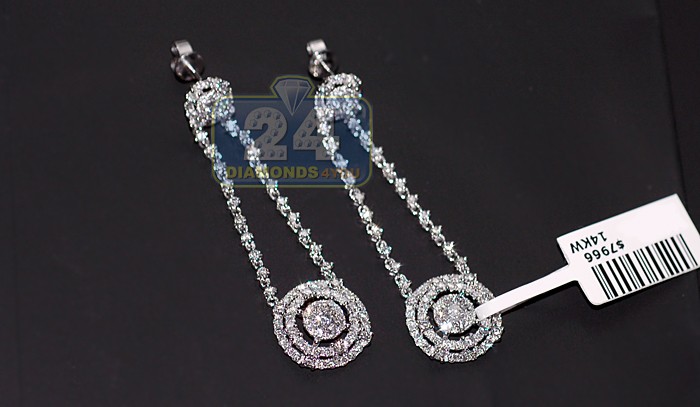 14K White Gold 2.48 ct Diamond Womens Dangle Earrings