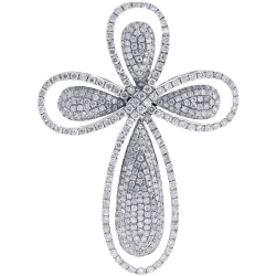 This men's cross pendant is a truly spectacular presentation of traditional religious motif! It's masterly manufactured from cool 14 karat white gold with highly polished very shiny finish. The piece is invisible-set with lustrous white princess and round brilliant-cut real diamonds weighting 2.50 carats (SI1-SI2 clarity, G-H color). Our diamond religious pendant has total length of 51 mm (without bail 34 mm) and width of 25 mm. A handsome bright symbol of hope and faith!