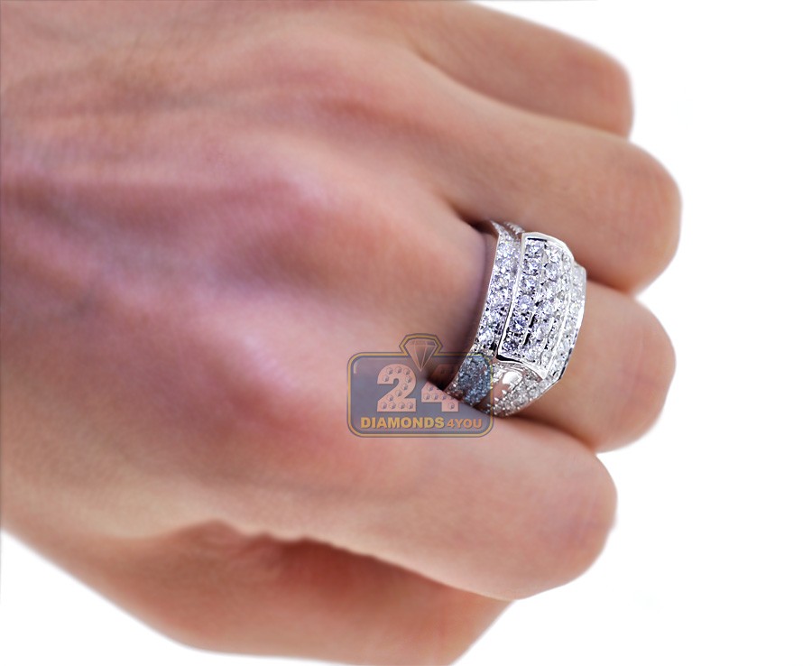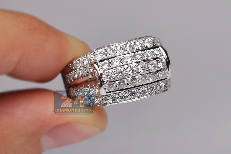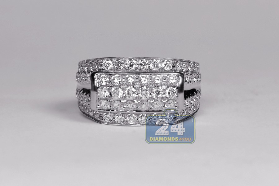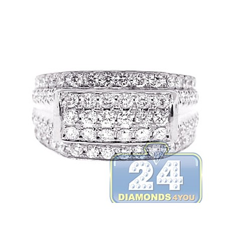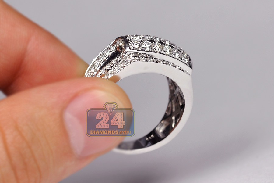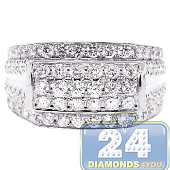 14K White Gold 2.50 ct Diamond Mens Signet Band Ring