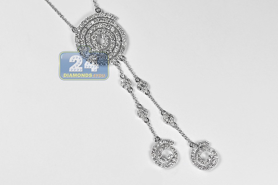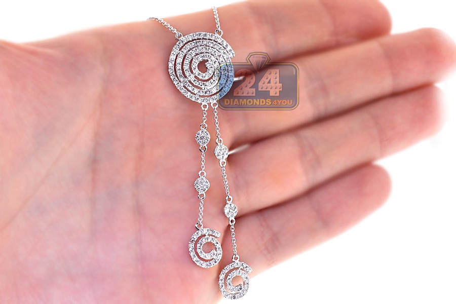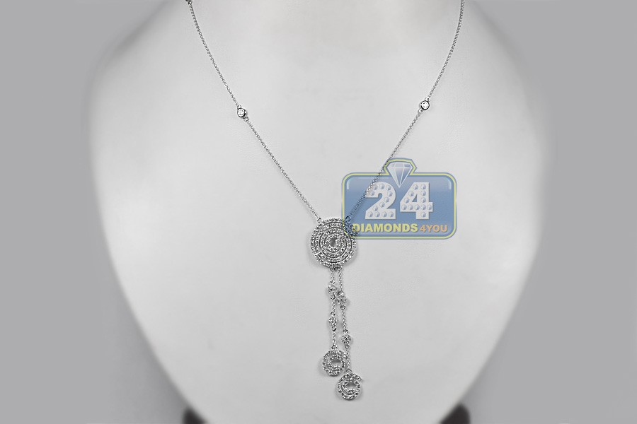 14K White Gold 2.50 ct Diamond Evil Eye Womens Lariat Necklace