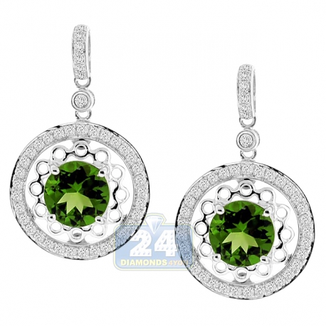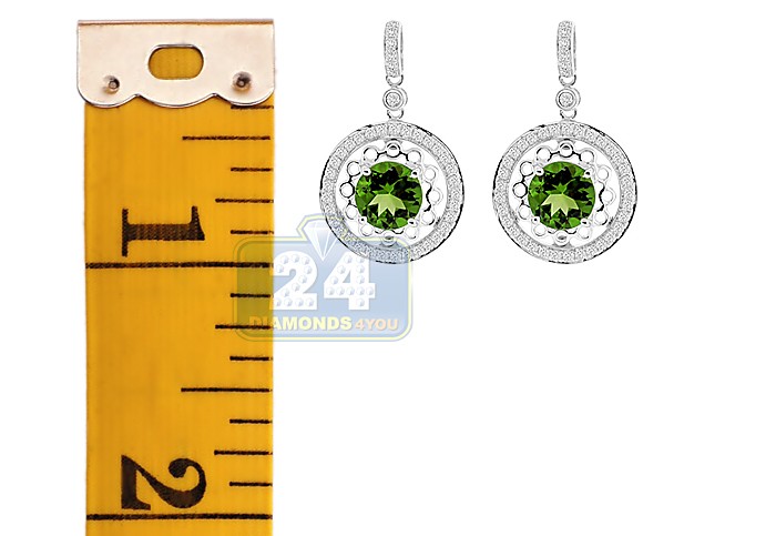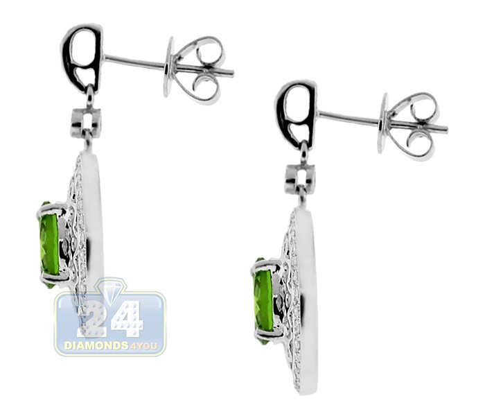 14K White Gold 2.51 ct Peridot Diamond Womens Drop Earrings