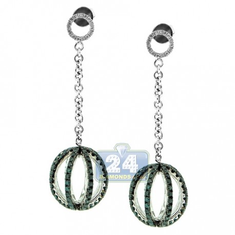 14K White Gold 2.55 ct Blue Diamond Ball Womens Drop Earrings