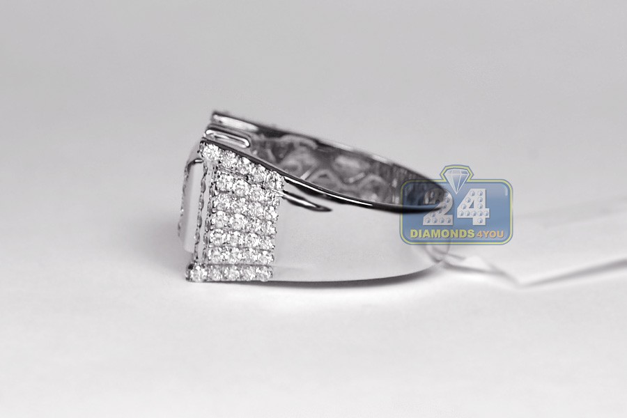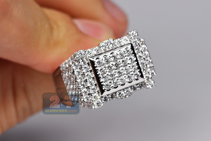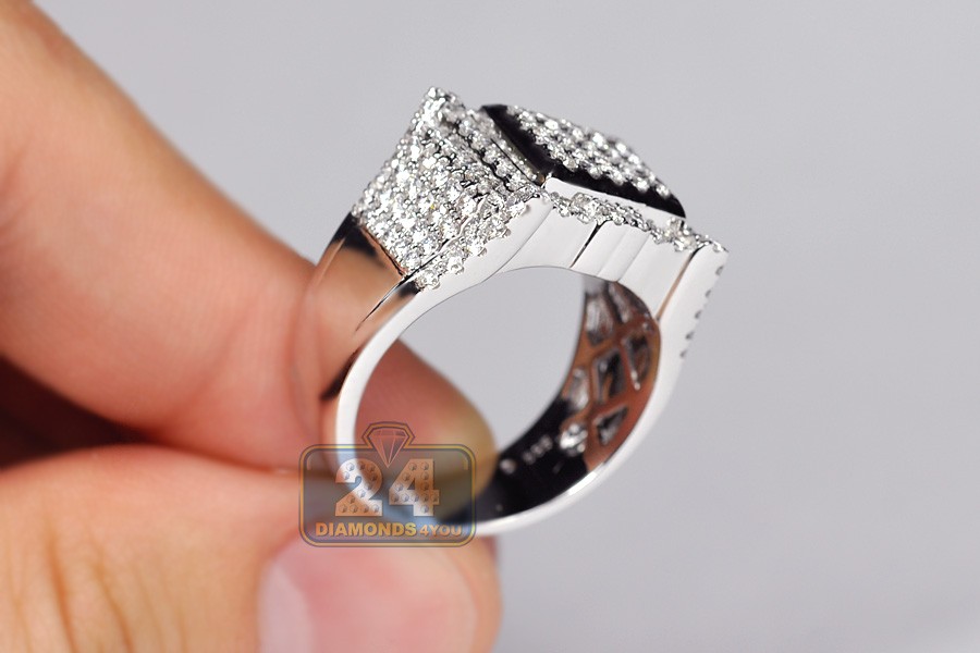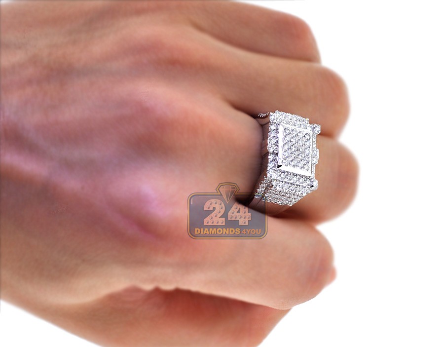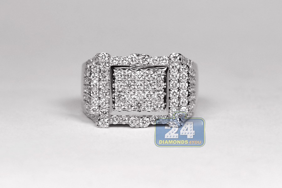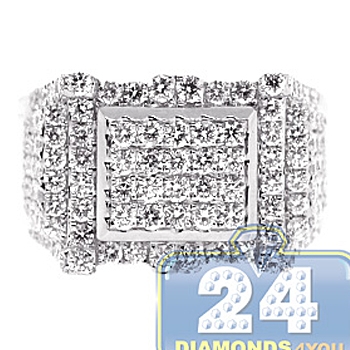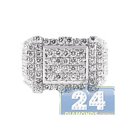 14K White Gold 2.59 ct Diamond Mens Rectangle Ring