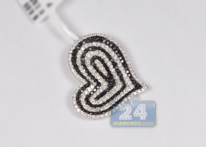 14K White Gold 2.60 ct Zebra Diamond Heart Womens Pendant