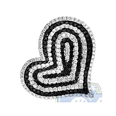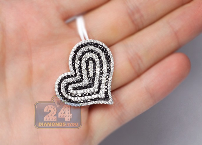 A fancy take on an iconic design comes in this diamond heart pendant! Professionally handmade of cool 14 karat white gold, it's high-polished for very smooth shiny finish. The heart-shaped pendant is studded with 2.60 carats of lustrous white and treated black round-cut genuine diamonds. This women's diamond pendant features 30 x 26 mm in size. A thoughtful gift for someone special!