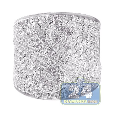 14K White Gold 2.65 ct Diamond Womens Wide Band Ring