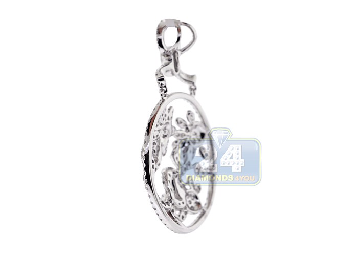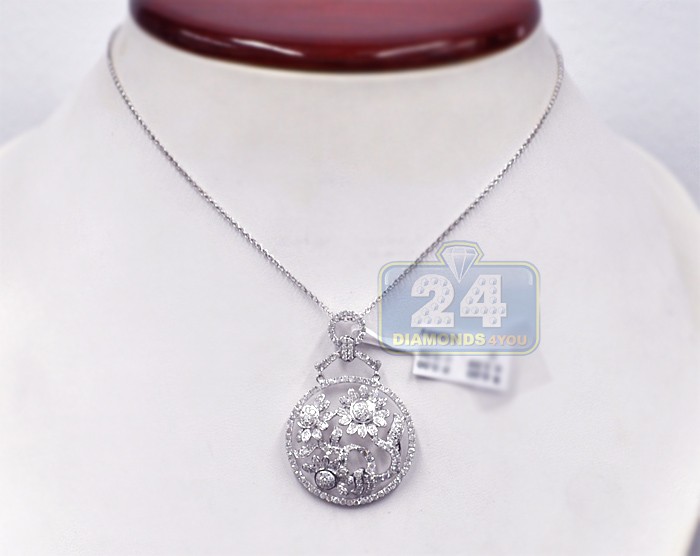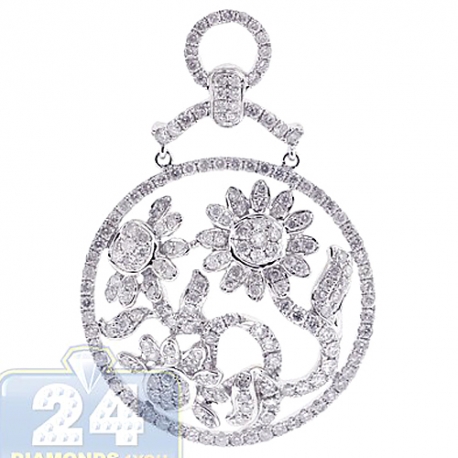 Simple but chic, our diamond flower pendant is designed in chandelier style! It's artfully handmade of cool 14 karat white gold with high-polished very smooth feel. The piece is set icy white round-cut natural diamonds, all weighting 2.76 carats (SI1-SI2 clarity, G-H color). Our women's diamond pendant measures 45 mm in dangling length and 30 mm in width. You will look amazing wearing this diamond chandelier pendant!