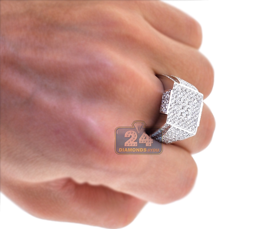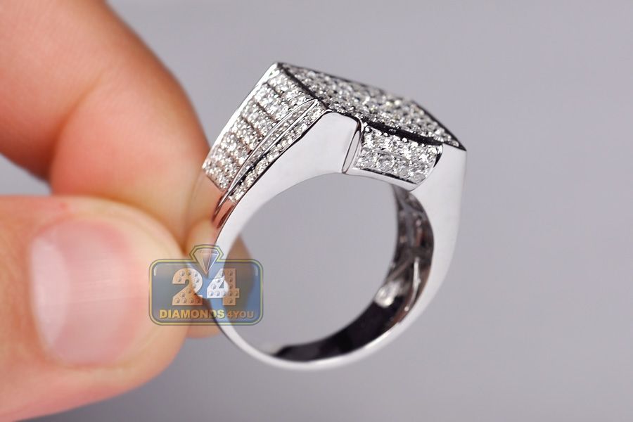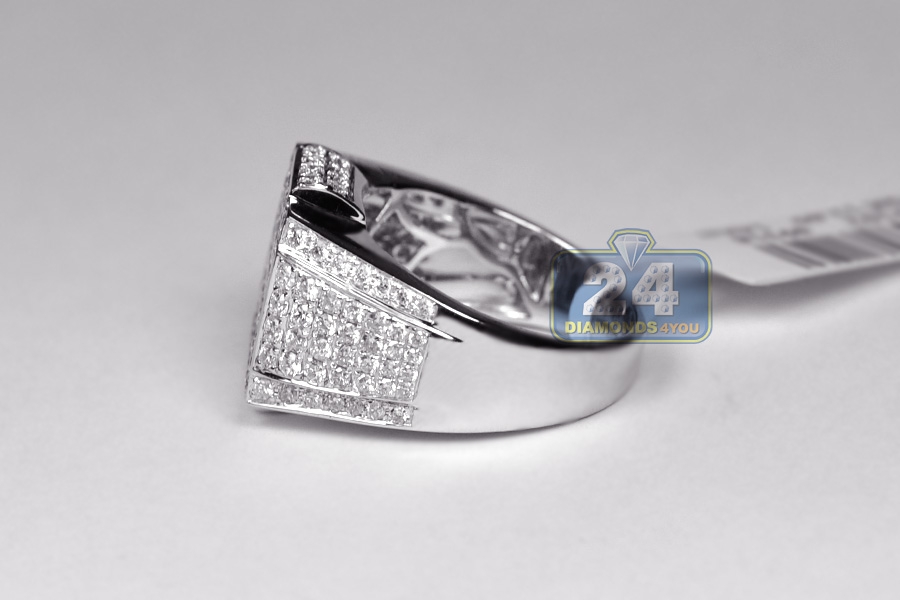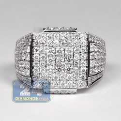 14K White Gold 2.80 ct Diamond Mens Classic Signet Ring